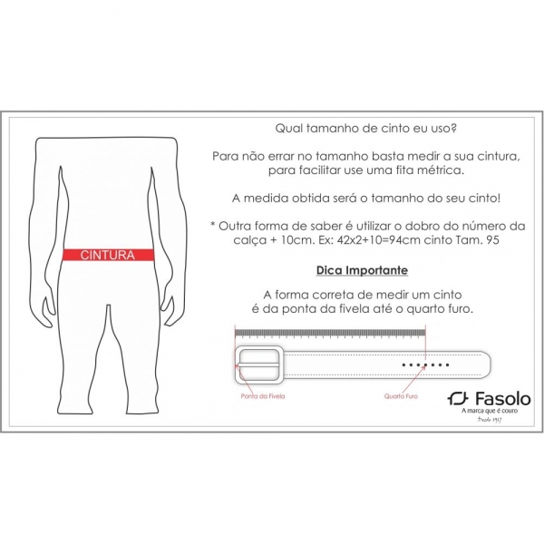 | Calça | Cinto | Tamanho |